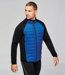 Polyamide ripstop quilted body. 90% polyester/10% elastane sleeves, sides and back.Polyester padding.Showerproof.Full length contrast zip.Two front zip pockets.Elasticated bound collar, cuffs and hem.Access for decoration.