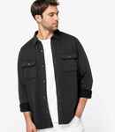 100% organic combed cotton. Brushed back fleece.Washed effect.Regular fit.Collar stand.Herringbone taped neck.Contrast recycled plastic horn effect buttons.Back yoke.Two chest pockets with flap and button closure.Single button cuffs.Straight hem.Twin needle hem.Tag free.Garment dyed after assembly, colours may vary slightly.The colour may rub off on contact with light surfaces or clothing.